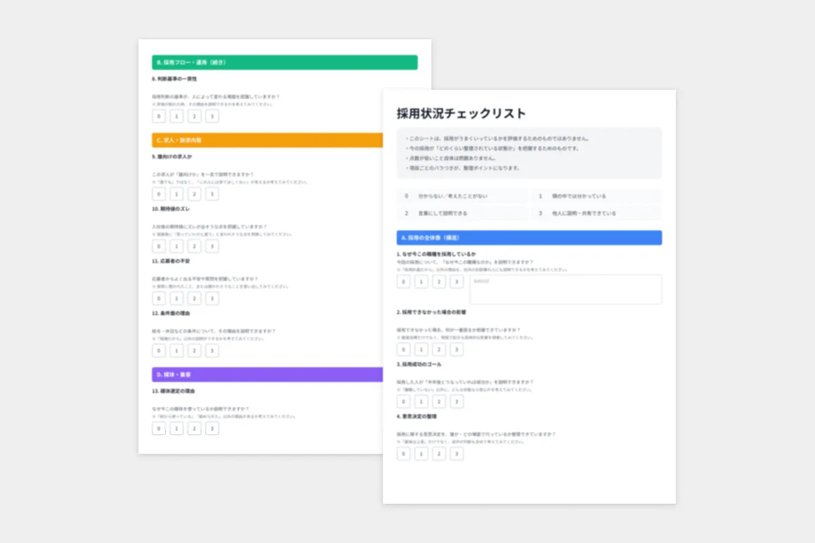 採用の課題やフェーズは、企業ごとに異なります。最初からすべてを整える必要がない場合もあれば、一部の実務支援から始めたほうが前に進むこともあります。